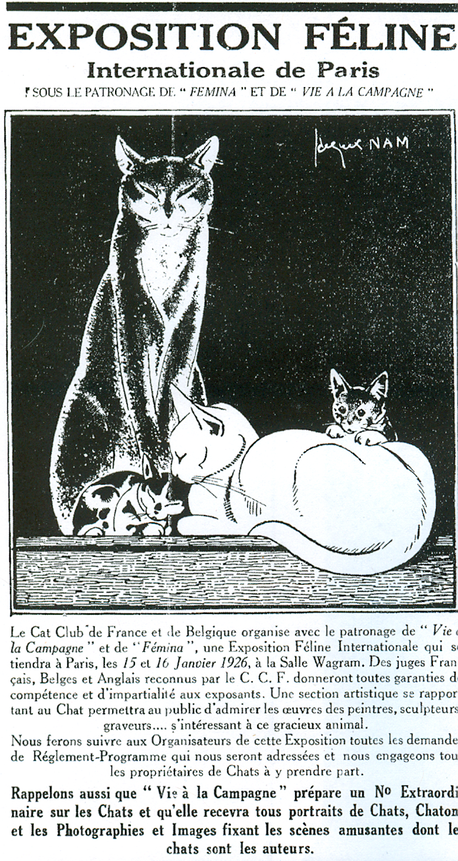 The French had their first Cat Shows in Paris only 25 years later (Jardin d’Acclimatation) in 1896, but these shows only stayed for a decade and disappeard at the beginning of the 1900. We need to wait 1926 to see the new modern creation of Cat Clubs in France & Belgium, and the First XXth century International Cat Show in Paris in May 14-15, 1926.